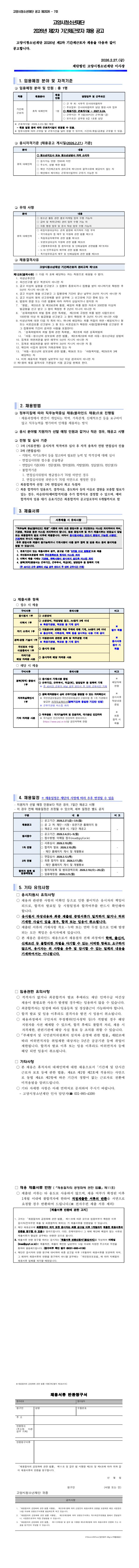 2026년 고양시청소년재단 제2차 기간제근로자 채용 공고